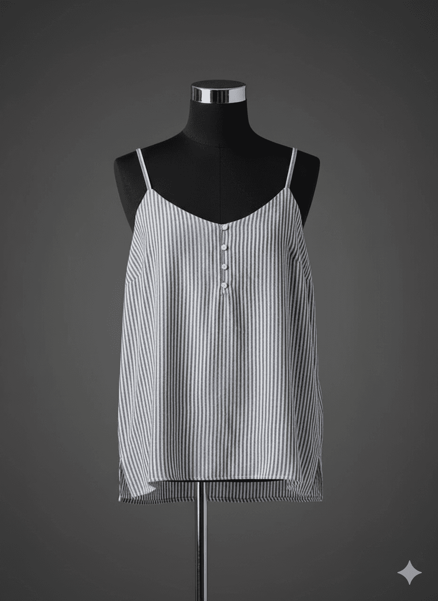The Harbor Stripe Button Cami from Old Navy is the perfect blend of breezy and polished, featuring classic navy-and-white vertical stripes and delicate button detailing. Made from a lightweight, breathable cotton-blend fabric, this cami is designed for comfort on warm days while offering easy layering options. Pair it with high-waisted linen trousers, denim, or a midi skirt for a relaxed coastal look. For care, machine wash cold on a gentle cycle, avoid bleach, and hang or lay flat to dry. Light ironing or steaming will help keep the stripes crisp and fresh.
